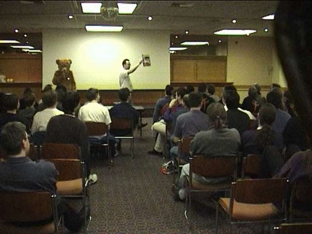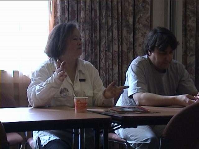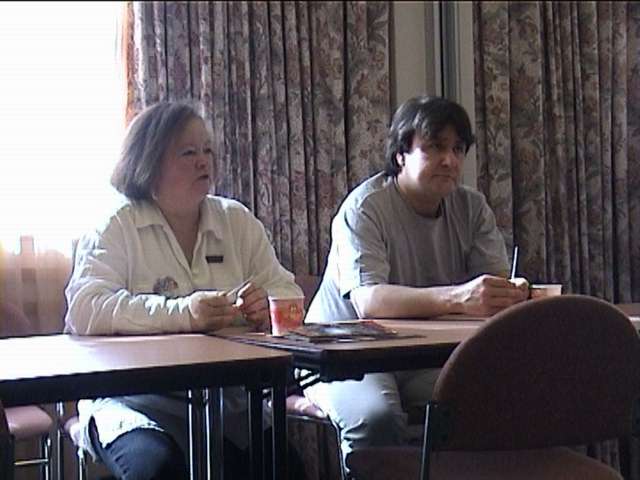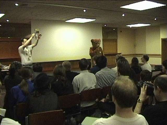 | Helen McCarthy gives a talk assisted by her trusty sidekick Steve Kyte |