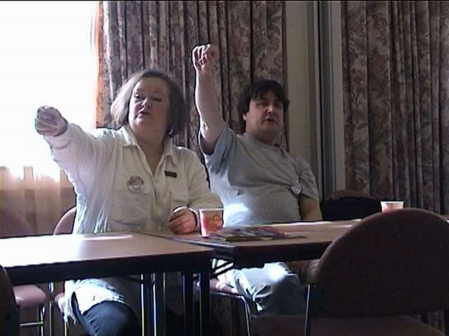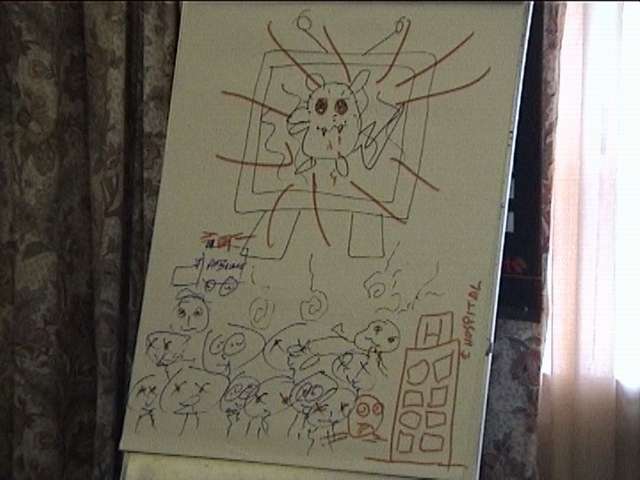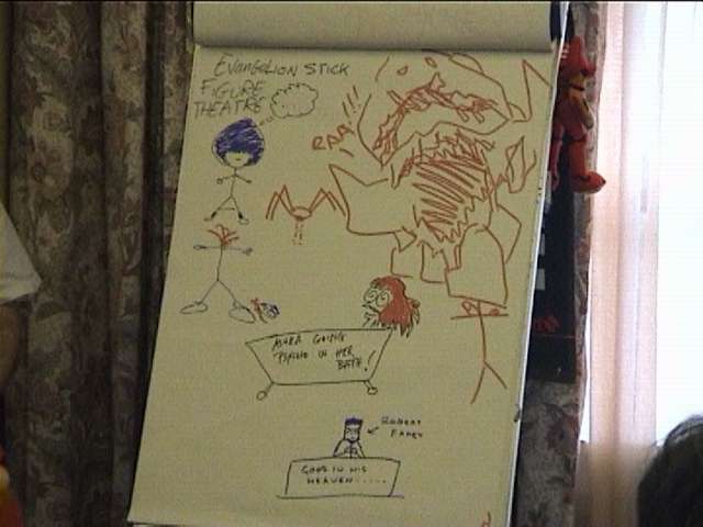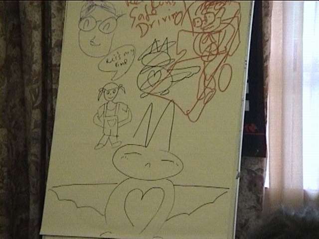 | Part of the quiz was a challenge round in which each team had to perform an embarrasing task of their choice. All but one team chose the 'draw characters from a show option'. These were the result. |